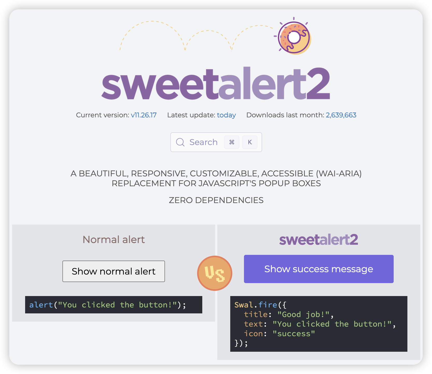 市面上弹窗插件很多。但我选择 SweetAlert2,原因只有几个: